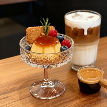 Özel dikey kadeh yoğurt tatlı zarif kabartma Tall puding bardaklar Milkshake mus dondurma cam yaratıcı temizle Goblets