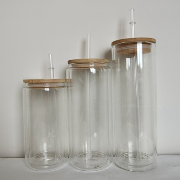 Şeffaf uzun borosilikat cam kupalar kola fincan soğuk içecek bardağı bambu kapak ve saman 16oz Soda bardak kapaklı ve saman
