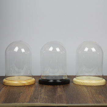 Büyük ekran cam mum Cloche cam kapak kubbe ahşap taban ile yeni desen dekoratif korunmuş gül cam kubbe çan kavanoz